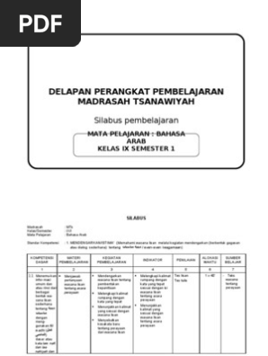 Bagi yang membutuhkannya silahkan tinggal download saja di link yang telah disediakan, silahkan tinggalkan komentar kamu buat mempererat silaturrahim kita. Yang bisa digunakan untuk melengkapi administarsi guru yang dapat di unduh secara gratis dengan menekan tombol download. Kepala ma assalamu'alaikum wr, wb. Yang mana silabus ini adalah faktor penting dalam perencanaan pembelajaran pada mata pelajaran. Silabus bahasa arab mts kelas 9 semester 1&2.doc.
